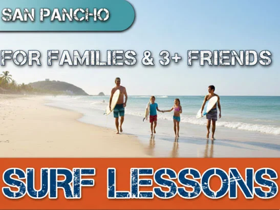 Experience the ultimate San Pancho surf adventure with your group! Perfectly located in San Pancho, Nayarit, our shared group lessons for 3 or more people offer professional instruction in one of Mexico’s most iconic beach breaks. Whether you are a family or a group of friends, we ensure a safe and thrilling session right on the main beach.